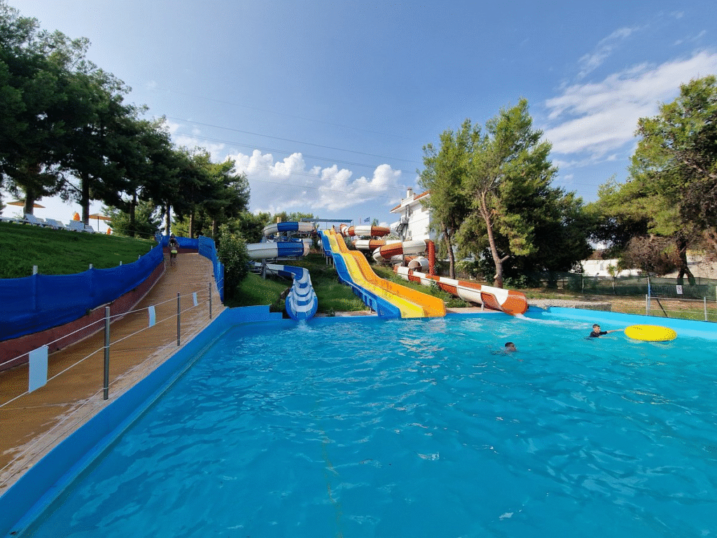 • Highlights: Giant slides, kids’ splash areas, pools, shaded seating, food court, and lifeguards on duty